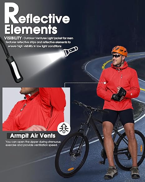 This lightweight rain jacket features a timeless, versatile fit.​ Ideal for cycling, running, hiking, travel, golf, fishing, mountain biking and other outdoor sports.