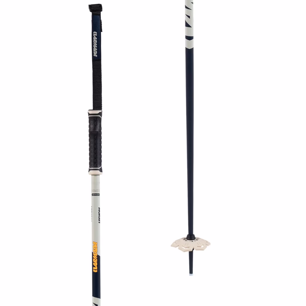 High-tech racing poles for your giant slalom races. Aluminum construction balances weight and durability. Mildly bent shaft provides greater aerodynamics. Soft, elastic strap for a comfortable, dynamic fit. Rocket basket won’t get caught up on gates. Carbide tip for biting grip on the course.