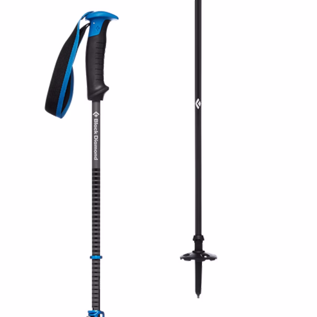 Touring pole for long missions or quick laps. Varying usable length is comfortable on both up and down hill. Aluminum and carbon shaft blends durability with weight savings. FlickLock Pro mechanisms offer durable and reliable adjustability. Touring grip with extended padding lets you choke up on side hill. Breakaway straps help provided peace of mind during big tumbles.